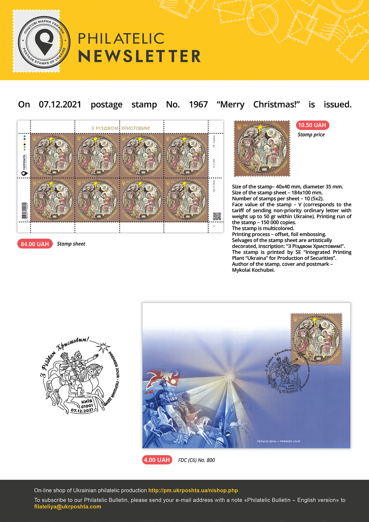 Postage stamp No. 1967 “Merry Christmas!” is issued.