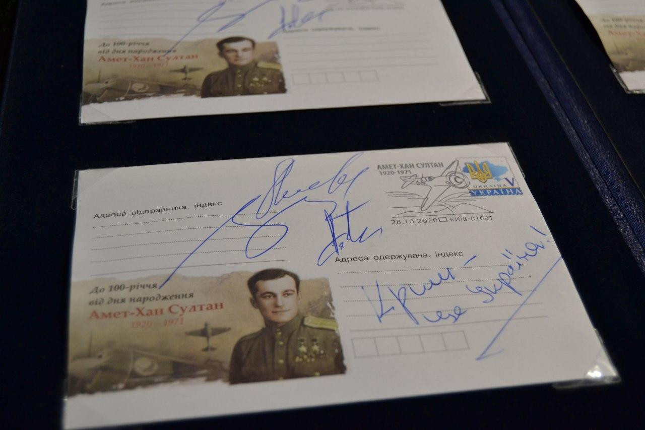 Сьогодні, 28 жовтня, з нагоди 100-річчя від дня народження національного героя кримськотатарського народу Амет-Хана Султана Укрпошта спільно з головою Меджлісу кримськотатарського народу та представниками Кримського дому презентували новий художній маркований конверт. На конверті зображено епізод художнього фільму «Хайтарма» із портретом Амет-Хана Султана.