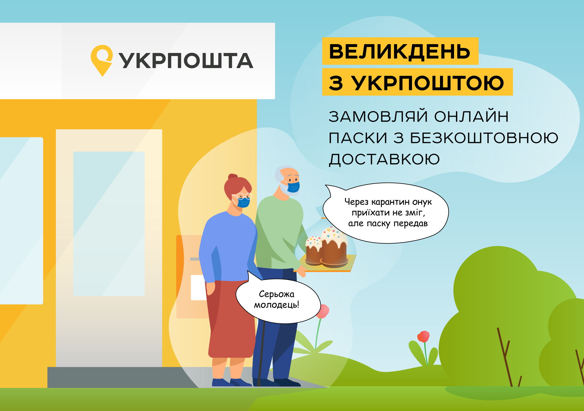 «Самоізоляція та й карантин не привід відмовитися від головного атрибуту Великодня – паски. Безкоштовна доставка – це наш спосіб потурбуватися про клієнтів у кожному місті, містечку чи селі, подбати про їхню безпеку і дати можливість привітати своїх родичів та друзів. Поки карантин не дозволяє людям зустрічатися особисто, Укрпошта дозволяє підтримувати зв’язок з тими, хто живе далеко, що особливо важливо у переддень свята», - прокоментував генеральний директор Укрпошти Ігор Смілянський