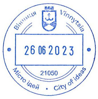 26 червня 2023 р. Укрпошта вводить в дію спеціальний поштовий штемпель з перевідною датою «Місто ідей. Вінниця. City of ideas. Vinnytsia. 21050».