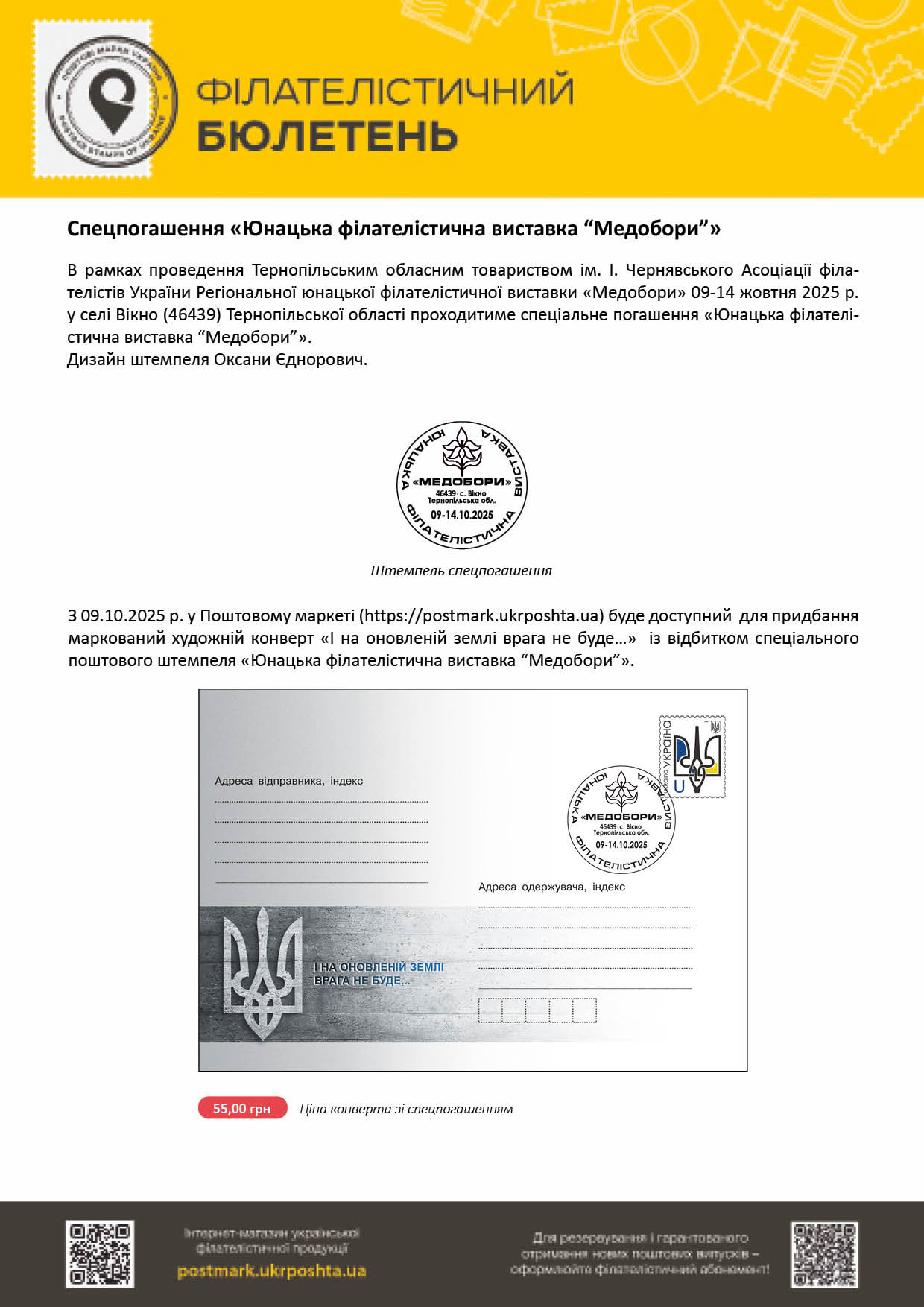 Філбюлетень "Юнацька філателістична виставка “Медобори"